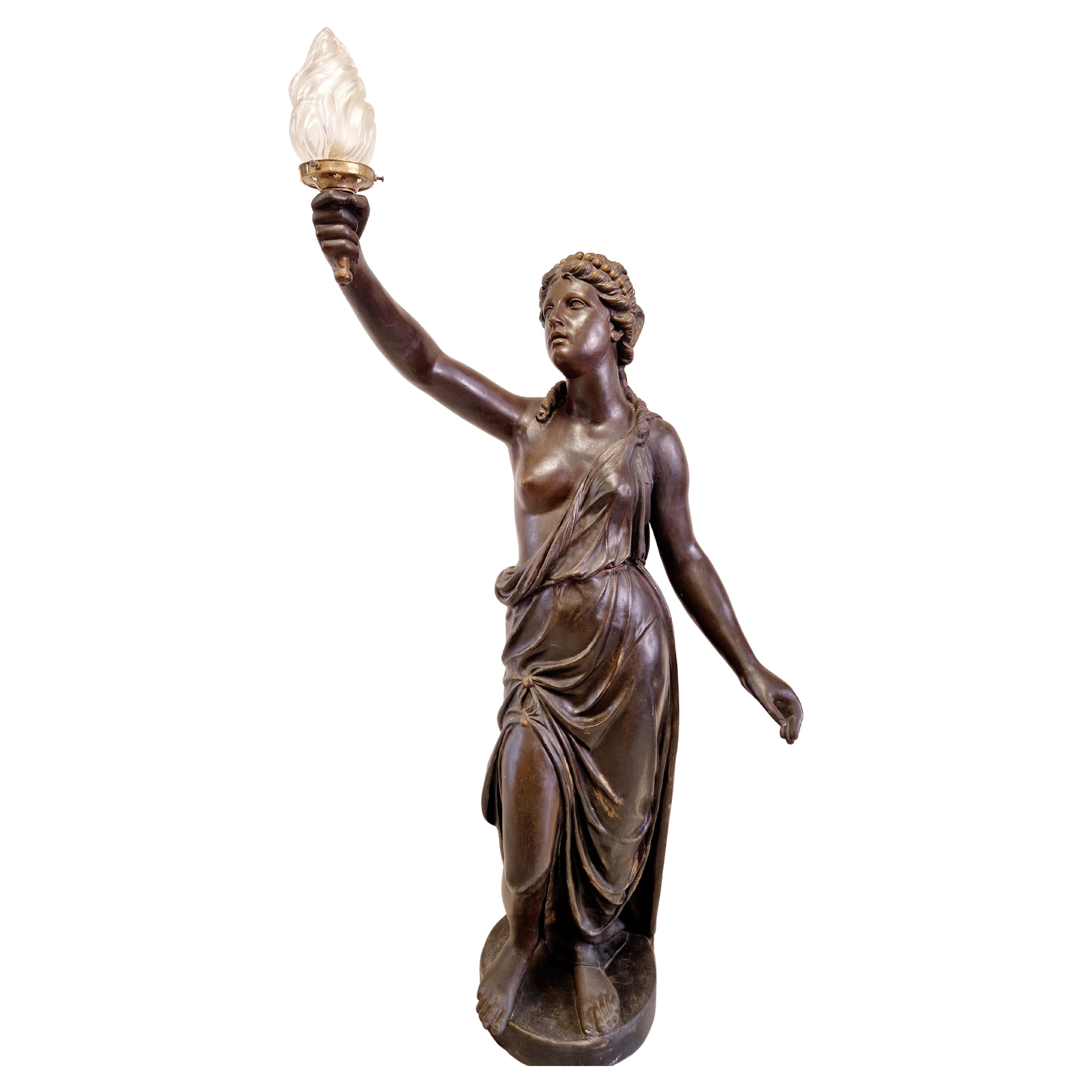Early 1900s French Belle Époque Antique Spelter Lighting