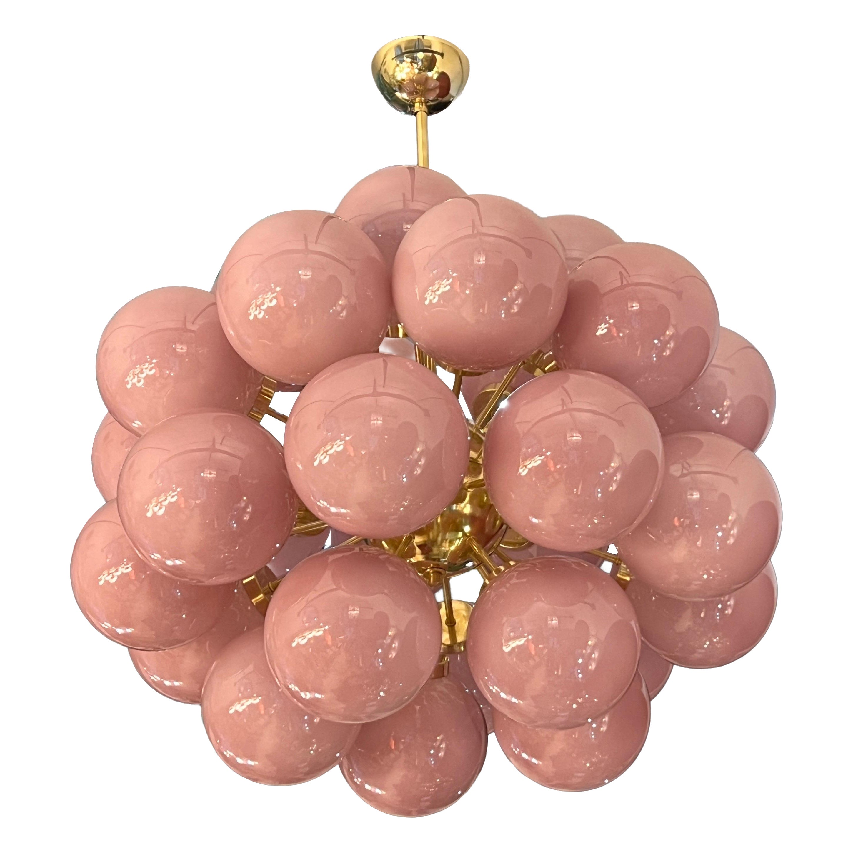 A stunning hand-blown Italian five-light Murano glass chandelier with an elegant chrome frame, crafted on the island of Murano in the mid-20th century. This exceptional fixture featu...