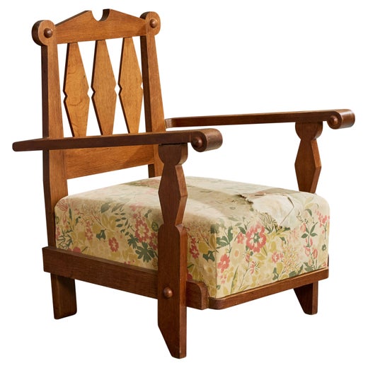 European furniture in the postwar period largely prioritized function as much as it did form and lacked any unnecessary ornamentation. Guillerme and Chambron wanted people to actually use their furniture, not just look at it. That design philosophy was a pillar of their company, its name translating to “your house” in French. Their signature touches included ornate tiles, hidden drawers and vibrant textiles on pieces such as desks, tables, shelving, lighting, benches and other seating. One of Votre Maison’s most famous and popular pieces was the Grand Repos armchair, a stately, high-backed wide piece with a skeletal oak frame, six spindles and plush cushions.