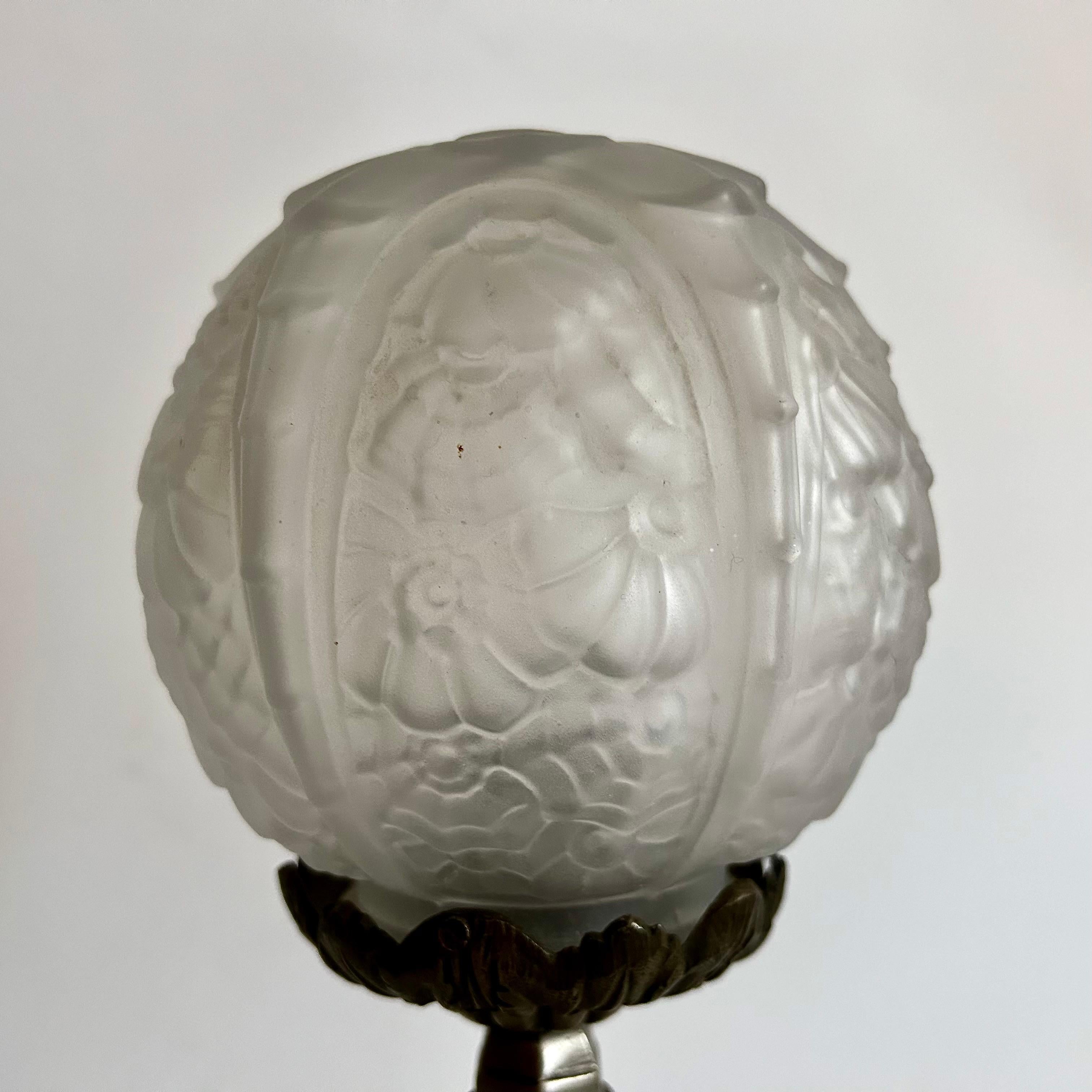 Art Deco early 1920s Lamp with original glass ball shade. Both shade and base are decorated with a floral relief.
