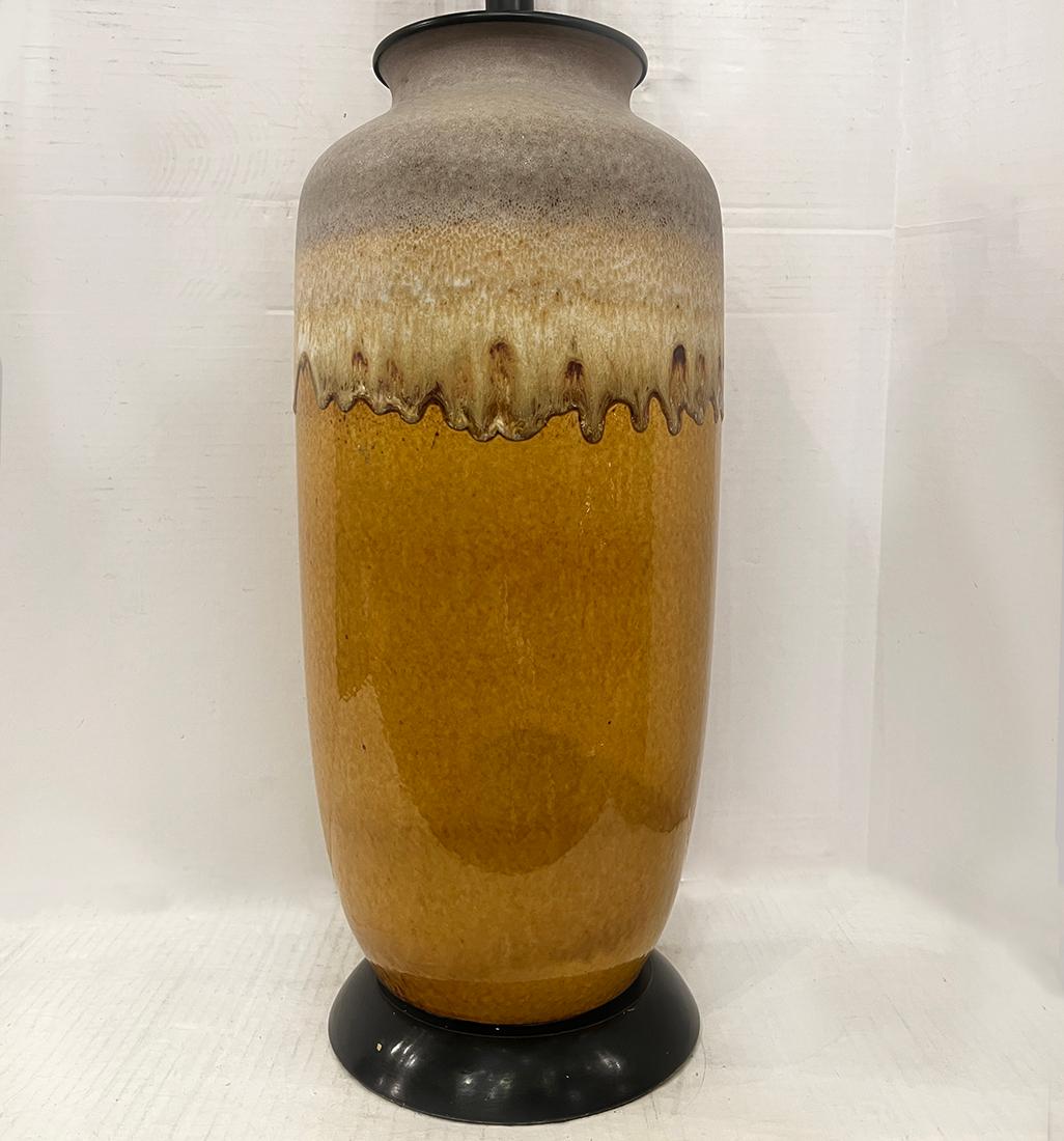 A single midcentury lamp in a luster swirl design is perfect for todays neutral interiors. Complete with a harp and a wooden finial. American, ...