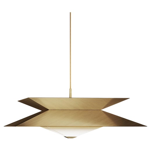 OCTA’s pendant originates from the intersection of two octahedral shapes. A brass shade and a frosted diffuser. The latter floats below the mirrored surfaces of the shade; shapes are...