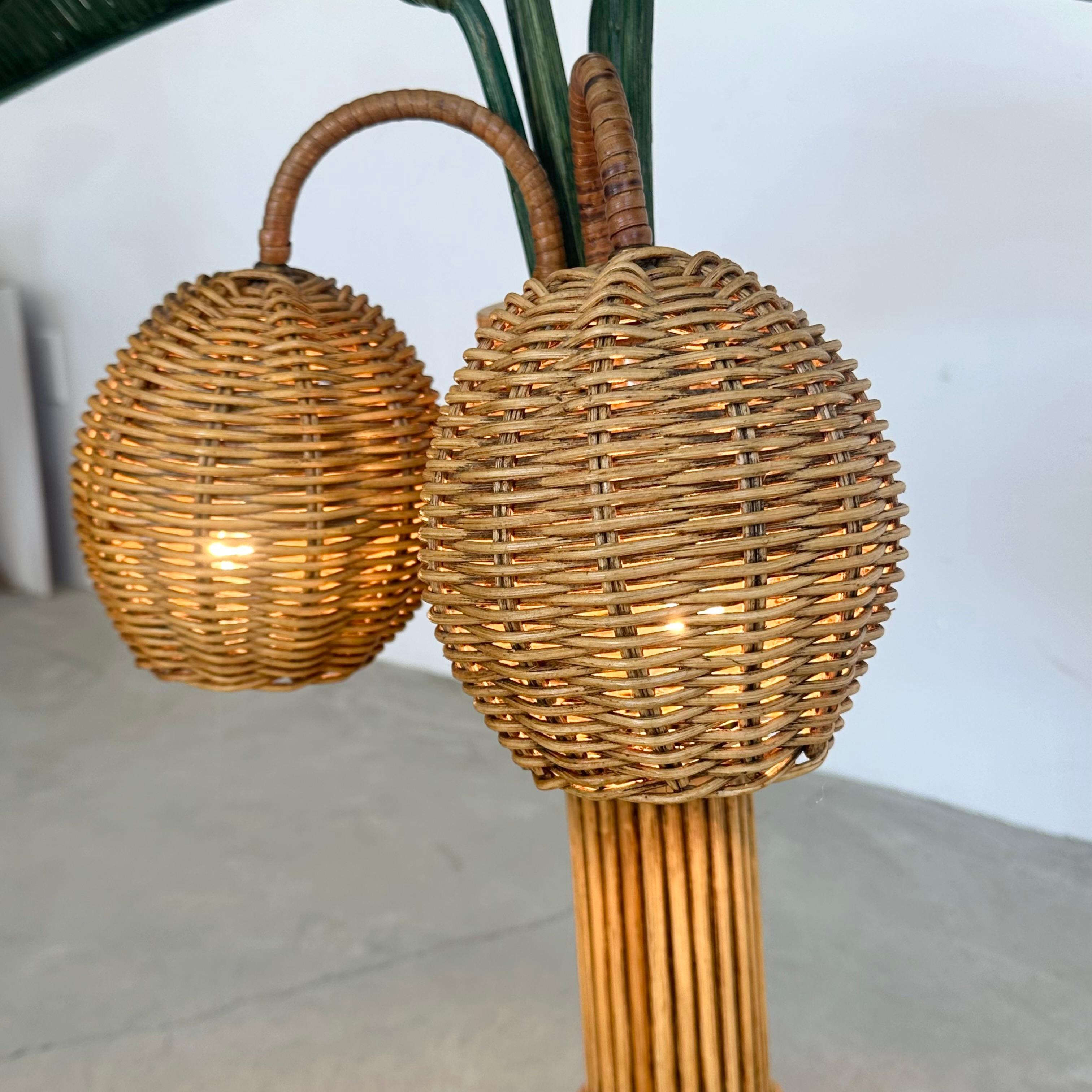 Rattan and Wicker Palm Tree Floor Lamp, 1970s United States