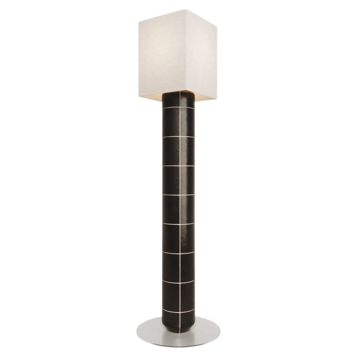 Textured and glazed ceramic lamp attributed to Keramos, Sèvres, France. Off-white tone. Dark brown circular frieze. Art Deco era. In good vintage condition. European socket and wirin...