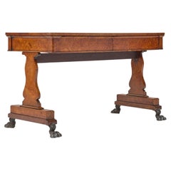 This unusual work box, mounted with blue and white jasperware signed Wedgwood plaques, is English in conception. The writing box was a popular form first used in the 18th c and well into the 19th c for traveling. This type of portable desk was described by the English poet William Cowper in 1785 as 'the most elegant, the compactest, the most commodious desk in the world.'