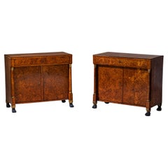 A rare opportunity to acquire a spectacular matching pair of Art Deco bedside Cabinets in Blonde Birds Eye Maple. Both cabinets are identical to each other and feature three generous...