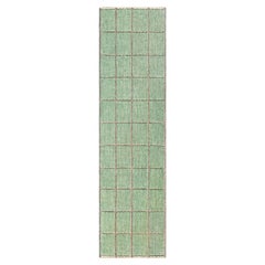 The lights feature elegant German Art Deco design with a patinated brass rod and canopy, complemented by a decorative moss green...