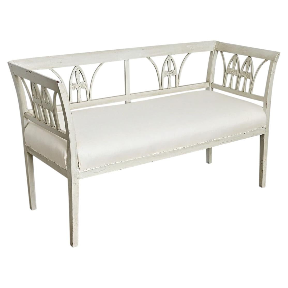 A French wooden ottoman from circa 1900 with tapering cylindrical legs, carved giltwood rosettes and muslin double welt upholstery. Step into the allure of French sophistication with this charming wooden ottoman from circa 1900, a piece that marries the elegance of classic design with the fine craftsmanship of the era. This ottoman, with its tapering cylindrical legs, carved giltwood rosettes, and muslin double welt upholstery, is a testament to the understated luxury and timeless appeal of French furniture.