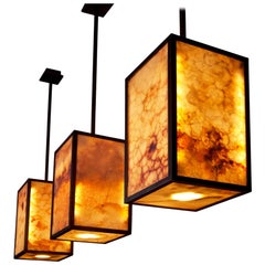 Luxury chandelier, made from thin pieces of translucent onyx. Ideal to be hung over a dining table, with versatile configurations. Featured on Netflix series Designing Miami, 1st episode!