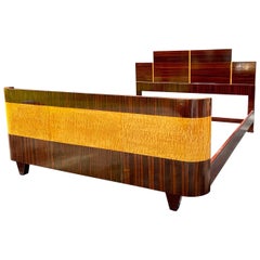Art Deco Palisander Sofa Of Scroll Shape Form with Leather and Suede Upholstery on Bun Feet - 65"w x 25"d x 28"h (21" to the seat)