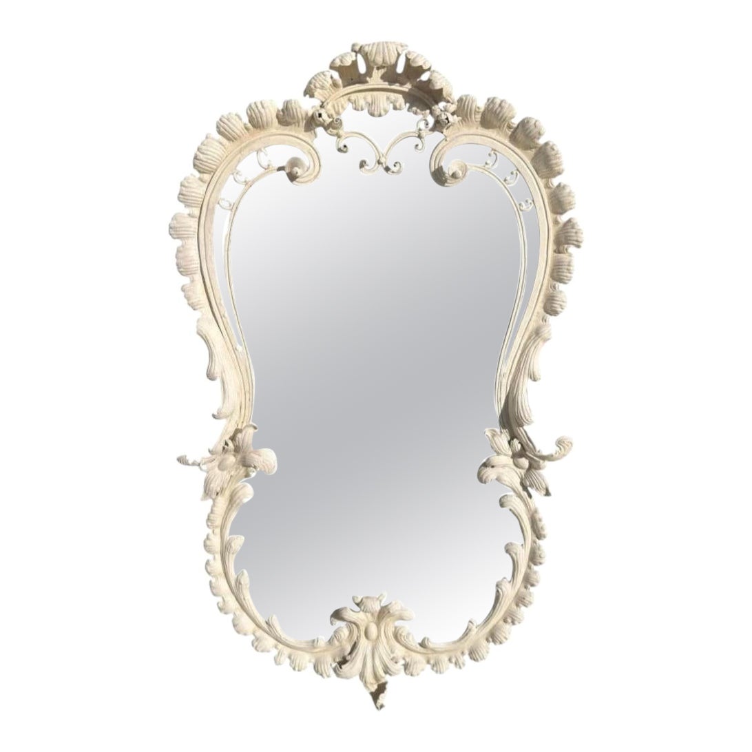Hollywood Regency White Enamel Iron Cartouche Mirror