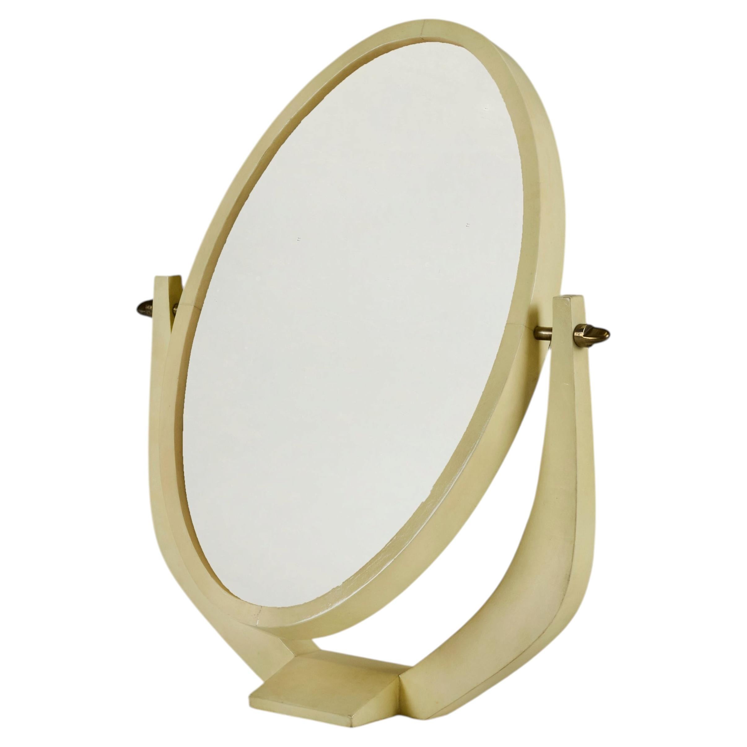 Large Lacquered Parchment and Chrome Framed Mirror after Karl Springer