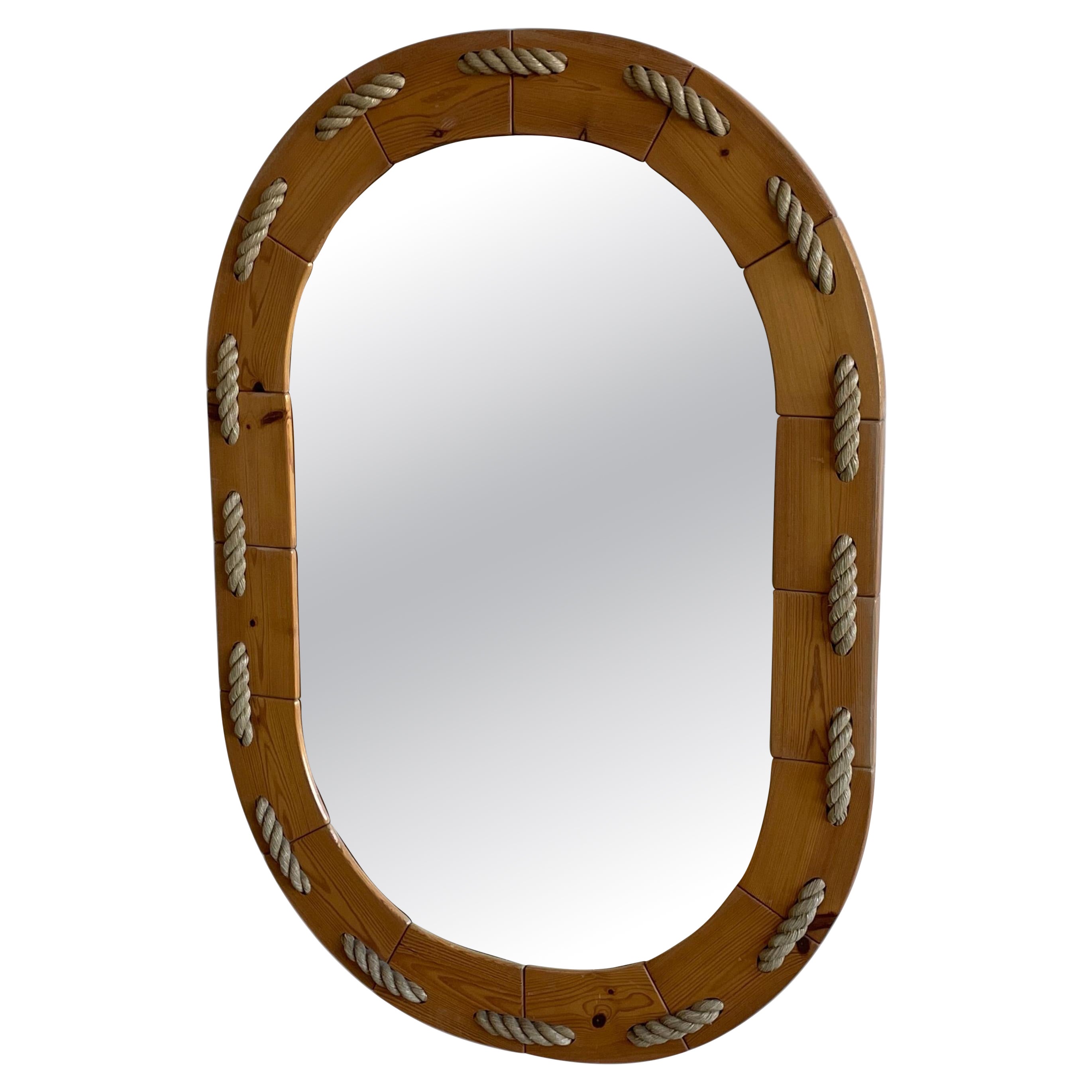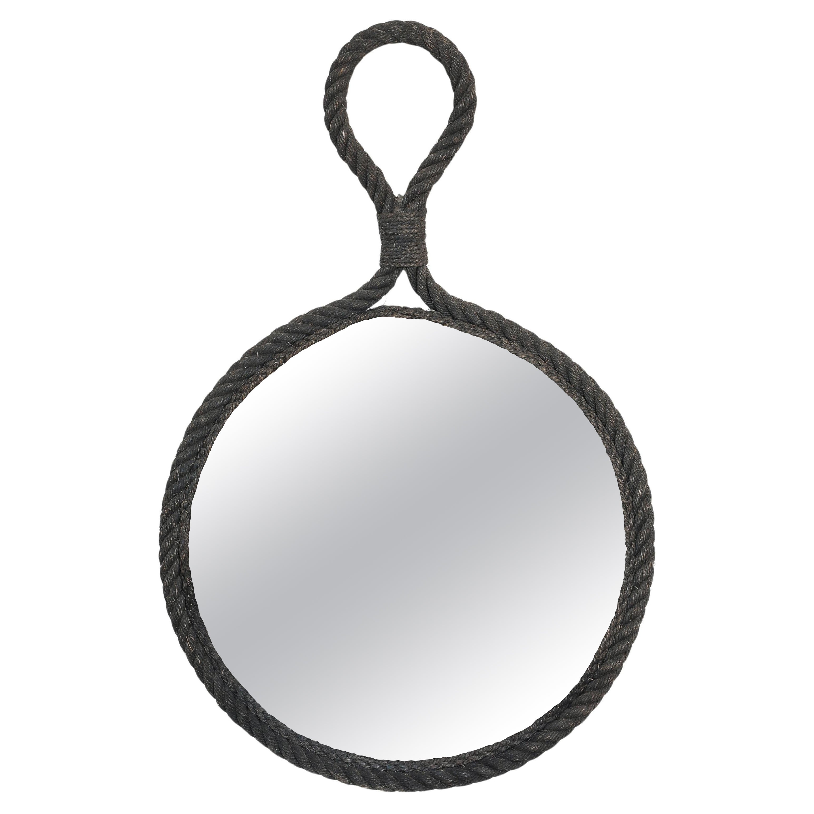 Oval Rope Mirror by Adrien Audoux and Frida Minet - 21.3" (54cm) - France 1950s