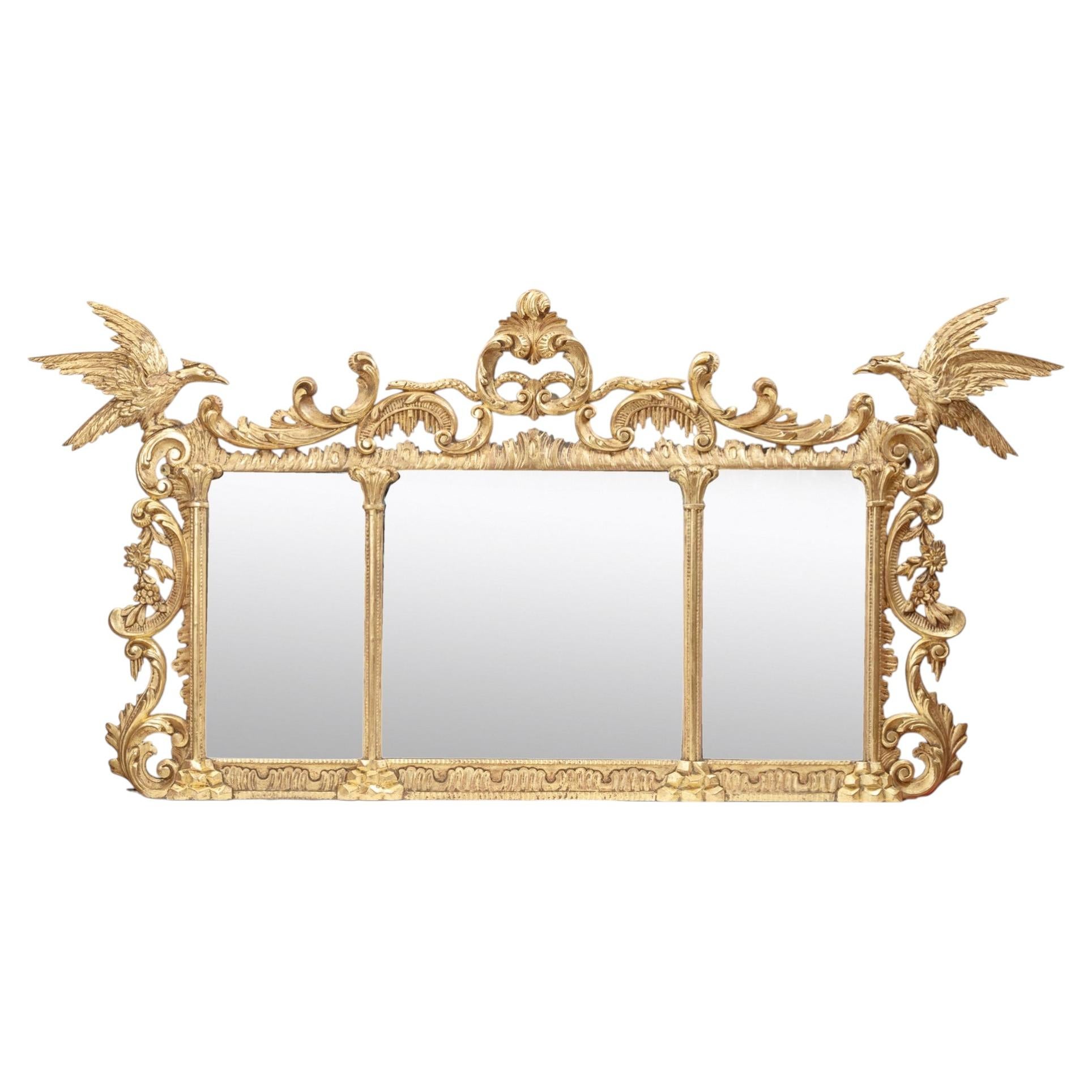 An unusual Irish George lII cut-glass mirror. Early 19th century. The arched top mirror plate is set within a frame of faceted blue and white glass studs with applied gilding. This...