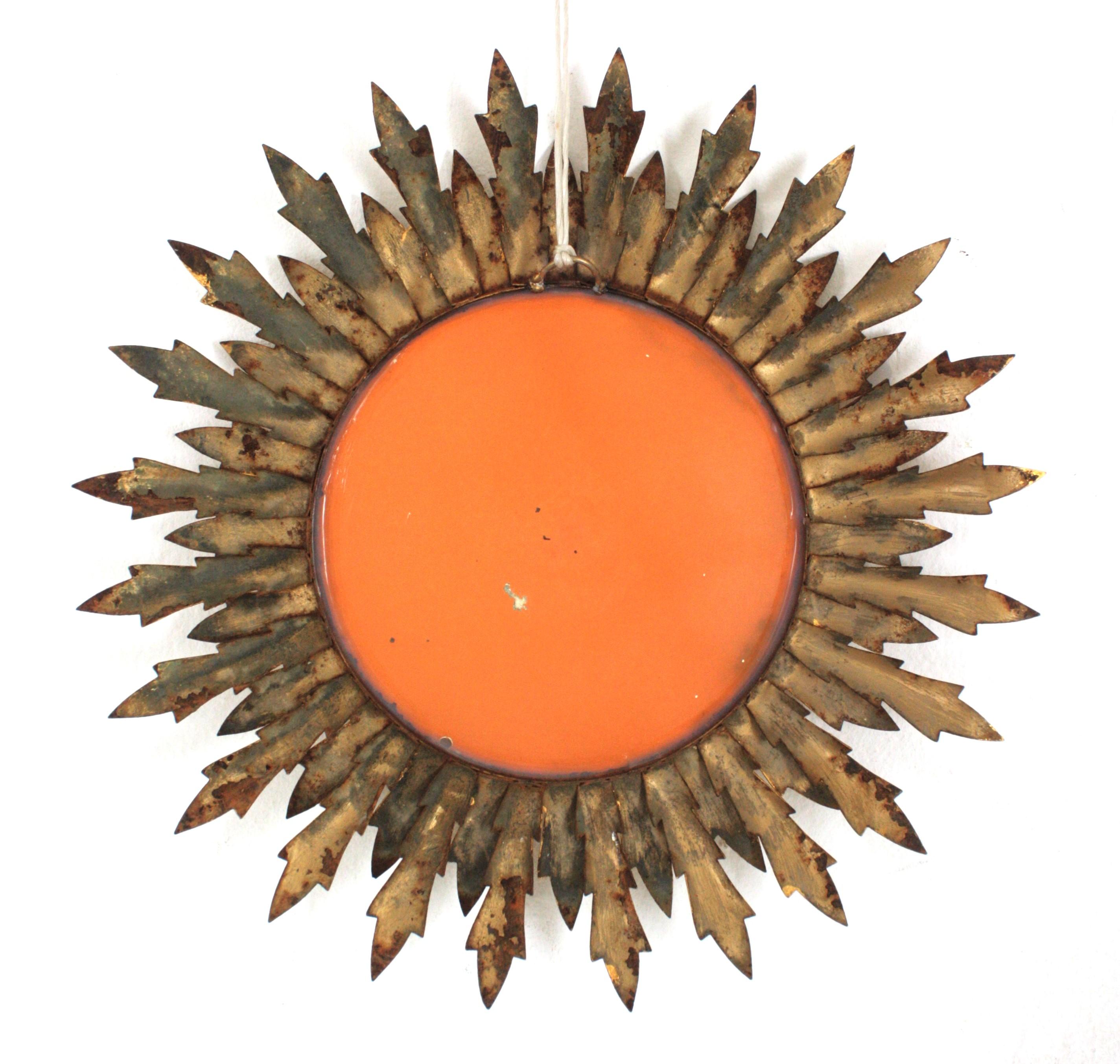 Gilt Sunburst Mirror // Spanish Sunburst Mirror in Gilt Iron // Gilt Patinated Sunburst Wall Mirror