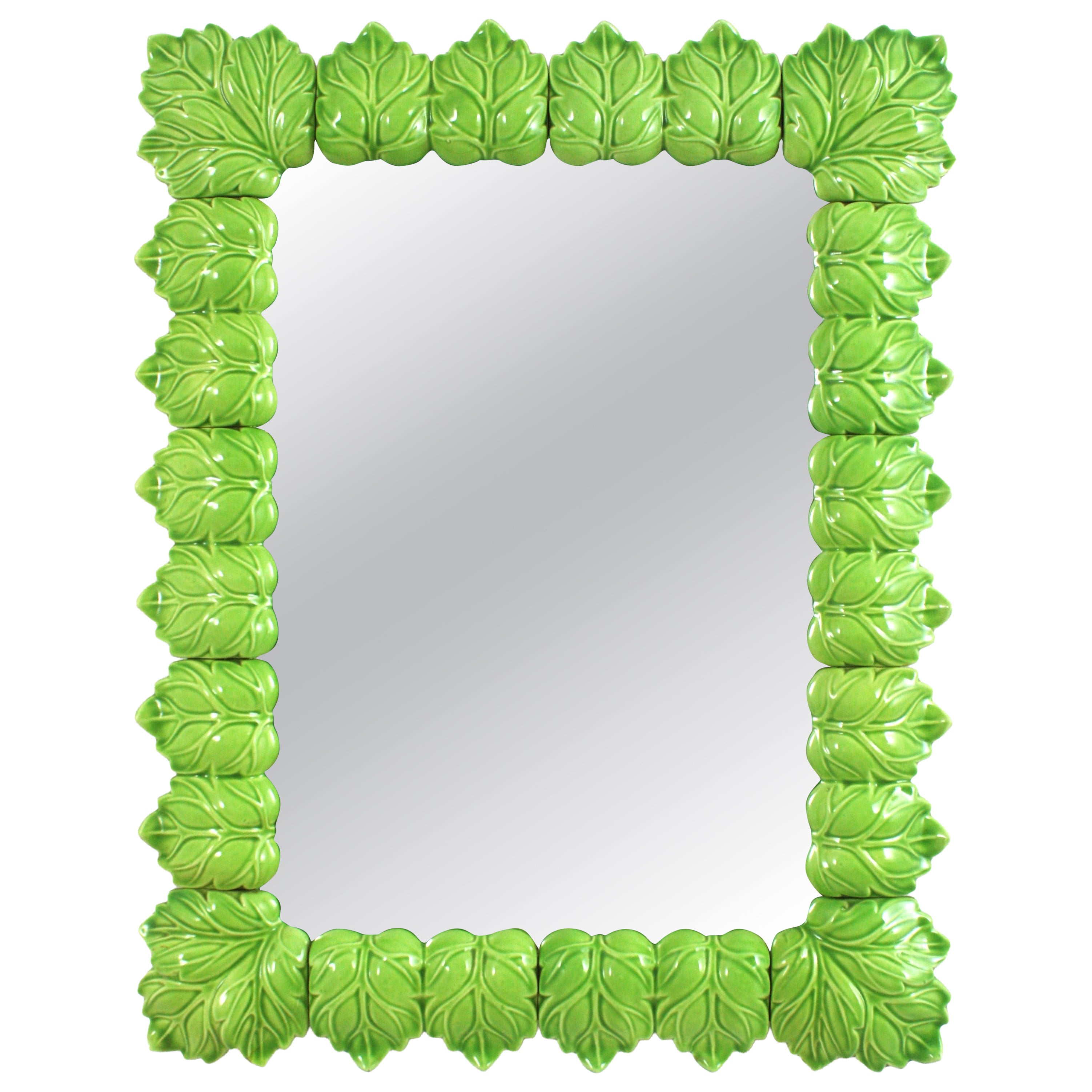 Ferro Art Rectangular Mirror in Gilt Iron with Foliage Motifs, 1950s