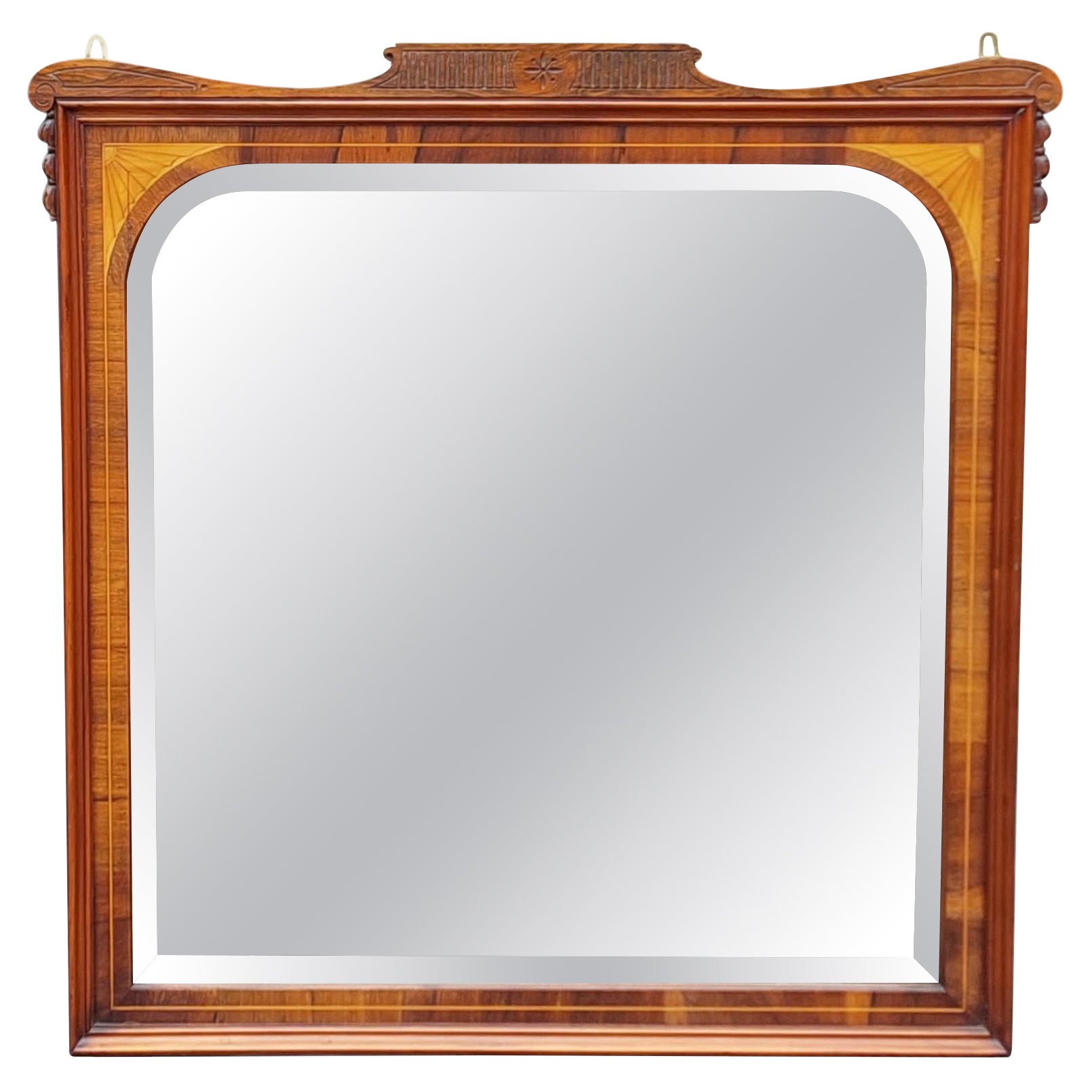 Large 19th Century Danish inlaid Biedermeyer wall or floor mirror The inlaid wood is done with three different colors. The mirror has the original mirr...