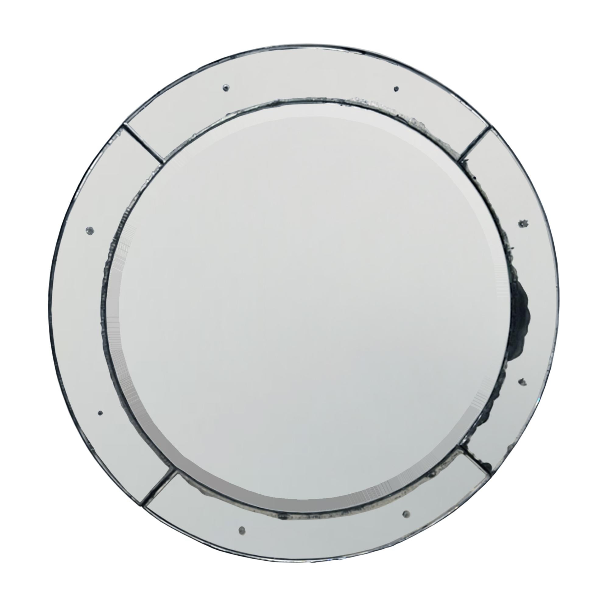 This stunning Art Deco floating edge round mirror was realized in the United States circa 1930. It offers a circular form with two banded layers of mirror circumscribing the perimete...