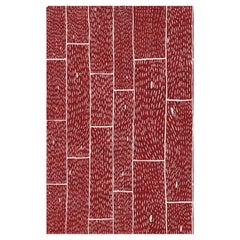 Modern Geometric Hand-Knotted Tibetan Wool & Silk Rug in Ruby Red and Burgundy