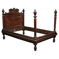 Antique French Brittany Carved Oak Bench with 16th Century Portrait Panels 1560