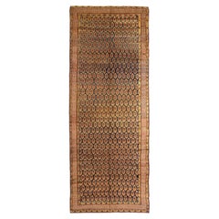 Zabihi Collection Mini Persian Kazvin Floral Antique Rug
