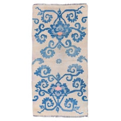 Antique Chinese Carpet, Oriental Rug, Handmade Nice Blue, Beige, Unusual Design