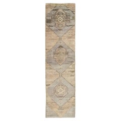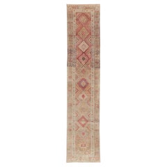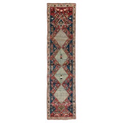 Antique Azerbaijan Runner Rug with 3 Geometric Medallions on Center Field