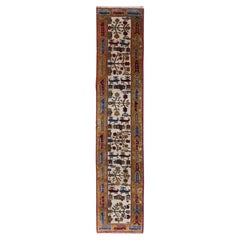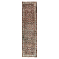 Vintage Persian Floral Kerman Red Runner Rug. Size: 3 ft x 14 ft 6 in