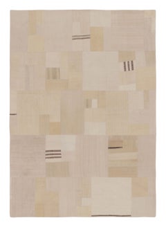 Mid-20th Century Geometric Beige, Yellow, Brown Flatweave Rug Dekolet Collection