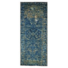 2'9"x16'8" Blue Pure Wool Afghan Angora Oushak Hand Knotted Runner Oriental Rug