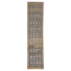 This exquisite antique Persian Heriz runner features a rare and sophisticated colorway of warm camel, muted slate blue, and deep espresso brown. Unlike the more common vibrant reds, ...