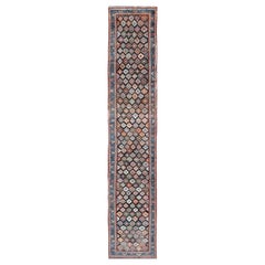 This is an antique fine rug that was acquired from a New York estate, featuring a rare elongated runner size and a beautifully balanced traditional design dating to circa 1890. It is...