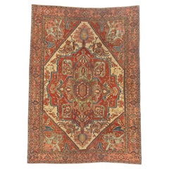 An extraordinary, authentic late 19th century Persian Heriz Serapi rug. Measures: 11'3'' x 15' The Serapi rug can be traced back to the beginning of Persian handmade rug production in 5,500 B.C., but it was not until the mid-19th century that Persian rugs began to be exported around the world. Before these rugs became an export item, they were used only in the villages in which they were produced. Mellow colors and more minimal pattern distinguish the Serapi from other members of the Heriz family. Original Serapi rugs were created in the villages of Serapi, Sarab, Ahar, Heriz and Gorevan. Older Heriz...