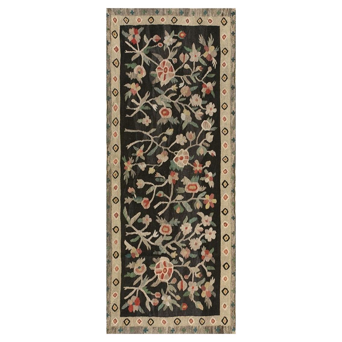 Vintage Black Ground Bessarabian Kilim with Botanical Pattern