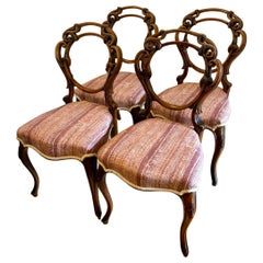 This is a fantastic set of twelve walnut and black leather upholstered-back dining chairs, late 19th Century in date. These chairs have been masterfully crafted in beautiful solid w...