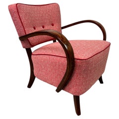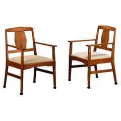 Pair of French Art Deco Walnut Armchairs with Scrolled Open Arms