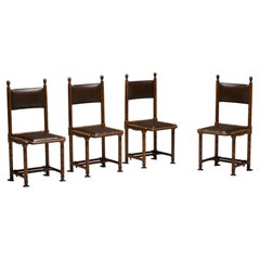 Antique Set 12 French Walnut & Black Leather Dining Chairs 19th Century