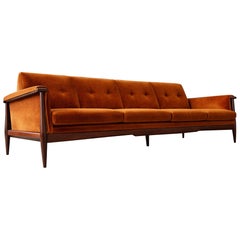Italian Mid-century Sofa in Wood and Orange Fabric
