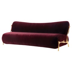 Rounded Silhouette Sofa In Ebony Wood Back & Eggplant Velvet By Jose Castro