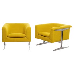 Stunning and elegant Bauhaus style S3001 club tub armchairs Design by Christoph Zschoke for Thonet. Striking German design from the 2000s. Original plywood and tubular steel frame, r...