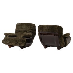 Pair of Mid-Century Modern Lounge Chairs in Forest Green Mohair by Pierre Frey