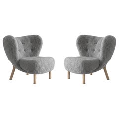 Sculptural Pair of Ash Wood Stools with Dedar Milano Bouclé Mélange by FORME