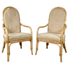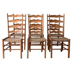 Pair Vintage Sherrill Oversized French Country Oak Ladder Back Lounge Arm Chairs