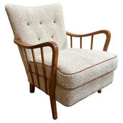 Alfred Christensen Danish Armchair in Light Sheepskin, 1940s