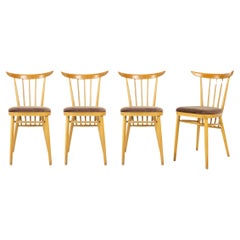 Here is a set of 10 Danish vintage razor blade chairs in great country style. They are designed by Henning Kjærnulf and manufactured by the Danish company Nyrup Møbelfabrik/ EG Furn...
