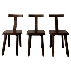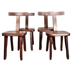 Pierre Gautier-Delaye, stools, beech, France, 1960s This subtle and modest design is executed in stained beechwood. The seating area is divided into two organically shaped slats and...