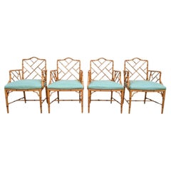 2 Hekman Chinese Chippendale Style Mahogany Spider Back Fretwork Armchairs