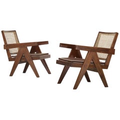 A hallmark of Jeanneret’s furniture designs is his great sensitivity to materials. In contrast to the tubular-steel chairs produced by Marcel Breuer and other members of the Bauhaus, the chromed metal pieces designed by Jeanneret and Perriand — including such as the now-classic LC/4 chaise longue and the Grand Confort lounge chair — have a sensuous, relaxed and welcoming look. Conversely, while Jeanneret uses essentially geometric forms for his wooden seating pieces, they exude warmth by nature of the material. One of his first manufactured designs in wood is the Model 92 Scissors chair, licensed by Hans and Florence Knoll when they were touring postwar France. But Jeanneret’s finest work in furniture was done in Chandigarh, and these are the pieces that have earned him recent renown. Crafted of teak, the designs range from low-slung lounge chairs and armchairs with cane seats to desks and tables, most with Jeanneret’s signature drafting compass-shaped legs. Many such pieces on the market today are refurbished, having been found by dealers languishing in scrapyards in India in the late 1990s. Chandigarh is now taking better care of its modernist heritage, making available Jeanneret works all the rarer.