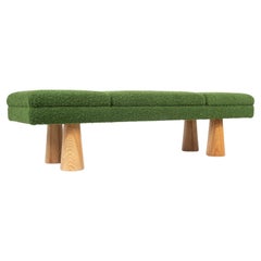 Elegant Velvet Bench with Two Solid Wood Legs By Jose De Castro