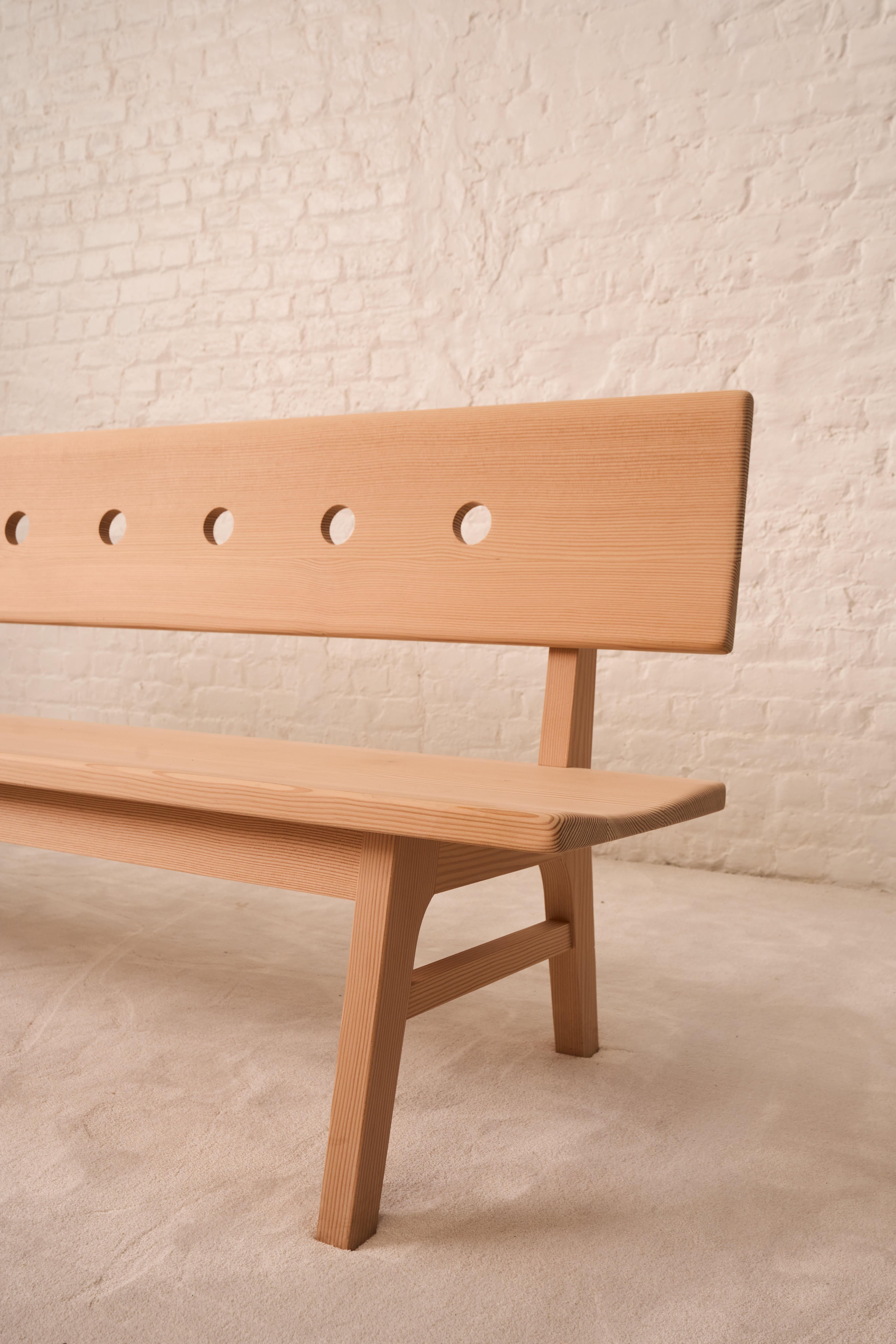 Large bench in pearwood and cherrywood by Dirk Meylaerts, 2025.